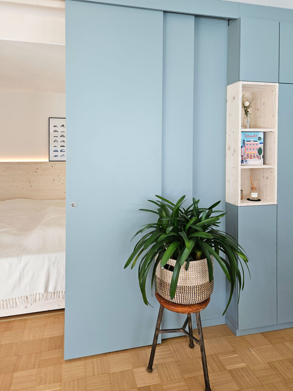 Die Schiebetüren der Bettnische sind entscheidend für die Raumwirkung: